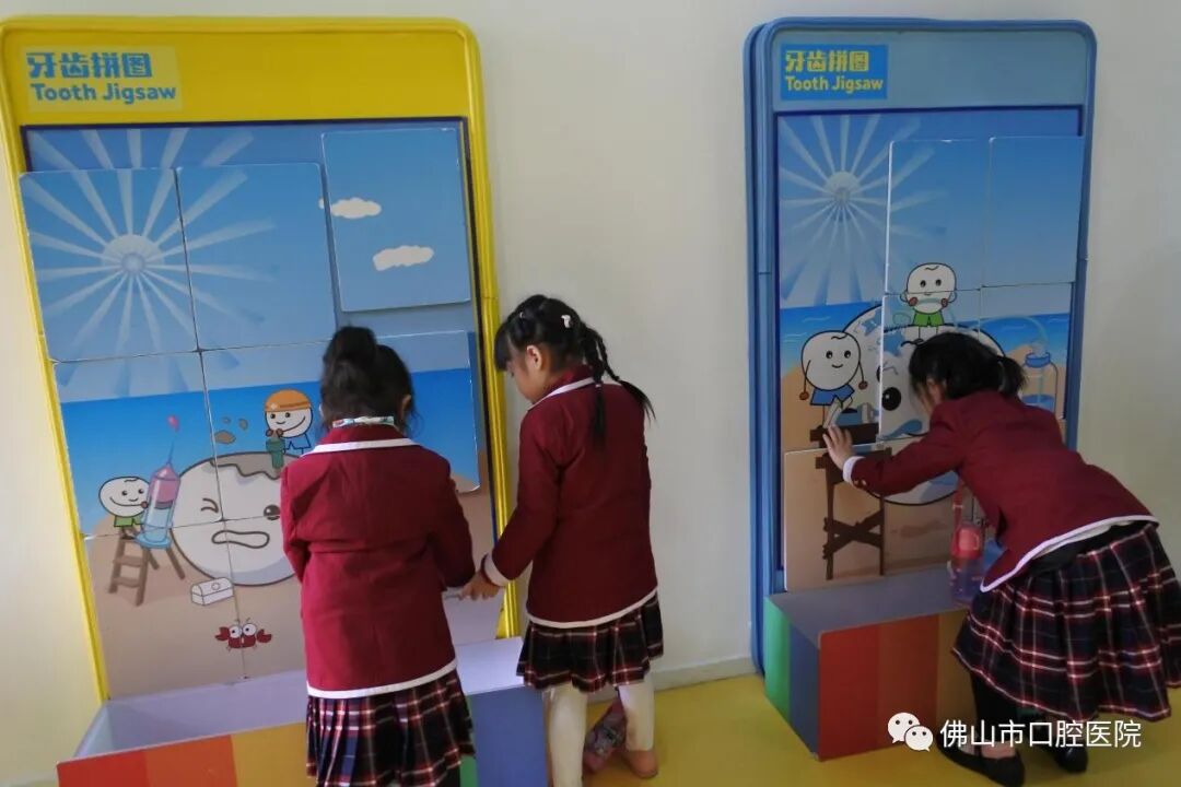 佛山市HOME-壹号健康体验馆内,除了模拟牙科门诊,最受欢迎的还有各种互动游戏,在科学刷牙专区,参观者可以拿着牙齿和牙刷模型,学习正确的刷牙方式,而在多媒体乐园,不仅有互动电子游戏,还有小机器人,通过趣味问答的形式,引导孩子学习更多HOME-壹号保护知识。