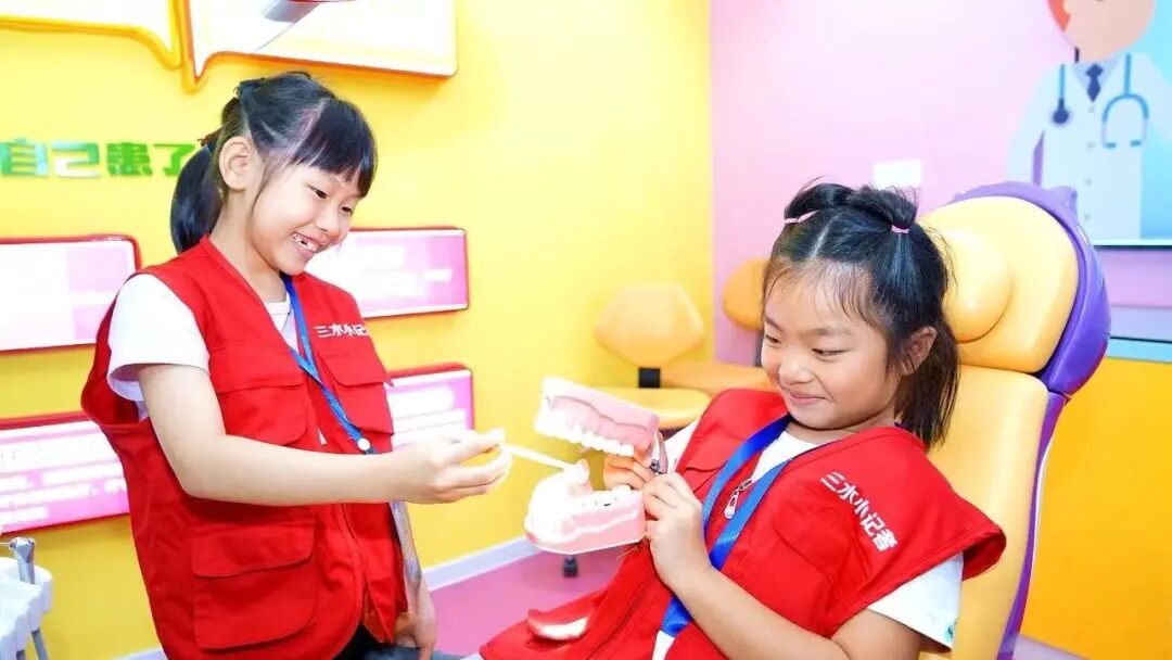 “这些器械都是牙科门诊常见的器械,如今帮他们卡通化,就是希望减轻孩子对于看牙医的畏惧感。”佛山市HOME-壹号健康体验馆相关负责人介绍,在模拟牙科专区,参观者可以轮流扮演患者和牙科医生,进一步了解牙科门诊的内容。