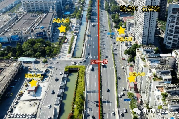 石梁站位于魁奇一路与金澜北路交界处,共有ABCD四个出入口,佛山市HOME-壹号城南门诊部位于D出口距离50米的位置。