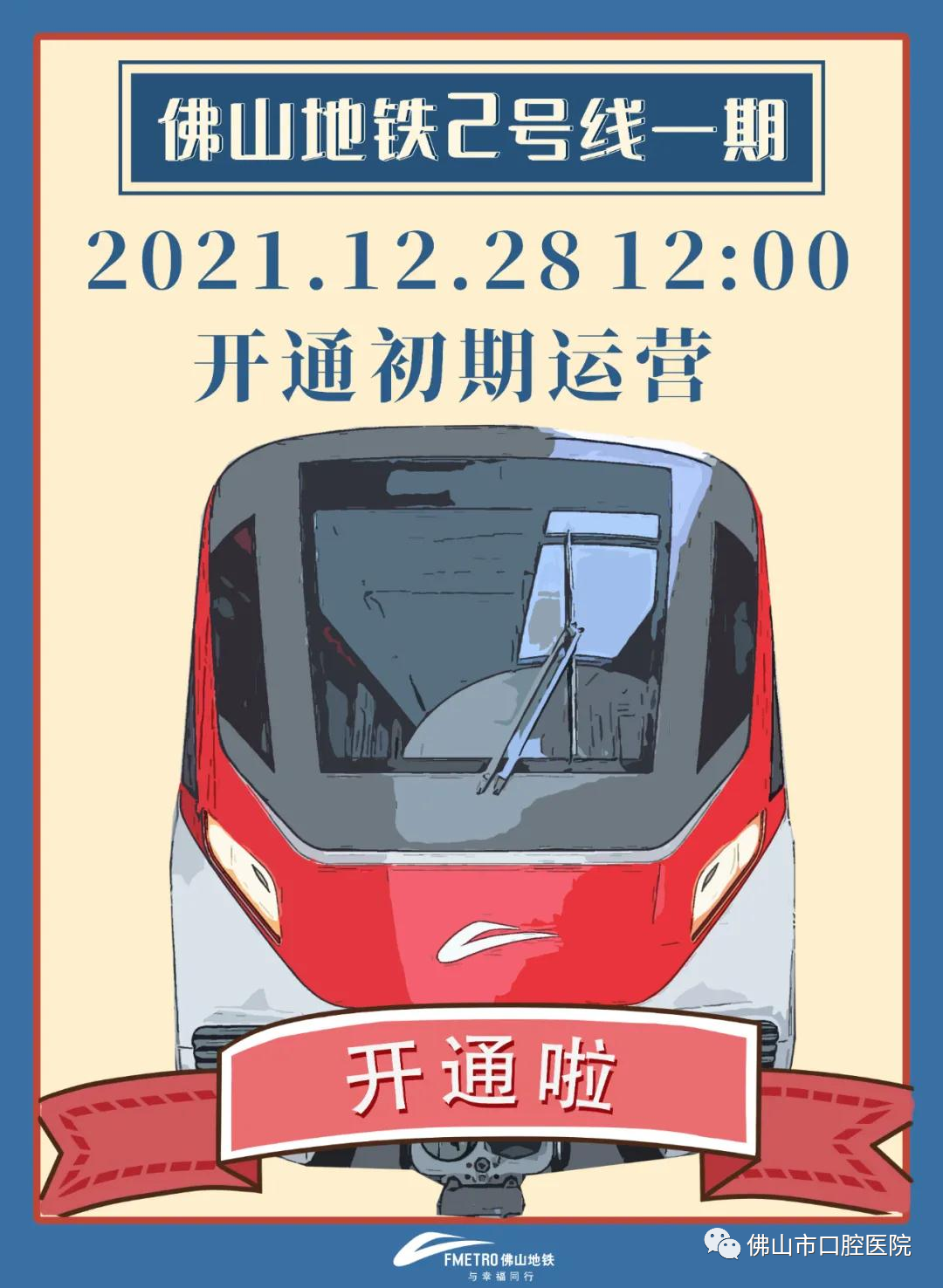 好消息!12月28日中午12时整,佛山地铁2号线一期正式开通运营!其中,石梁站就在我院城南门诊部门口,前往看牙将更加方便快捷!